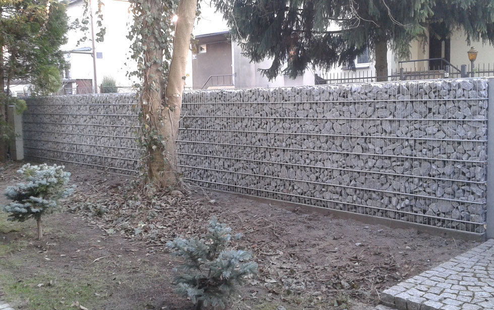 Gabiony tworzą nowoczesny i oryginalny wygląd ogrodzenia charakteryzują się trwałością i odpornością na czynniki atmosferyczne.