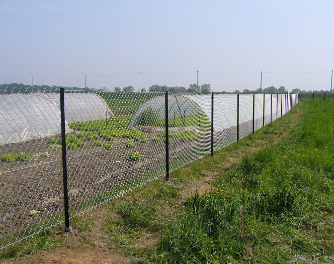 System ogrodzeniowy z siatki plecionej o oczkach w kształcie rombu.