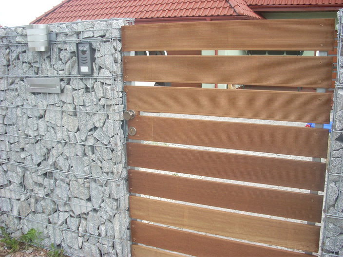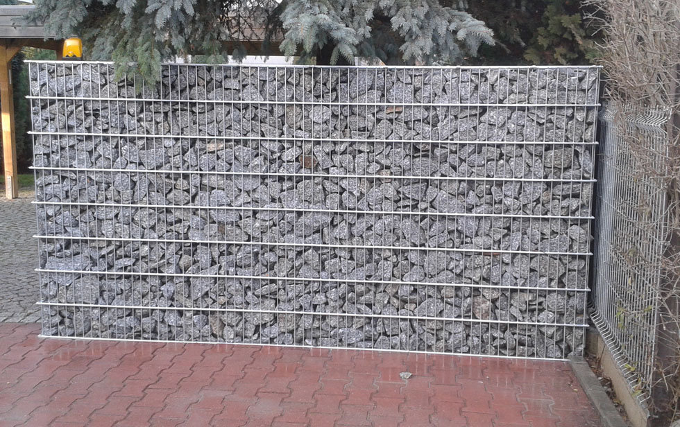 Gabiony tworzą nowoczesny i oryginalny wygląd ogrodzenia charakteryzują się trwałością i odpornością na czynniki atmosferyczne.